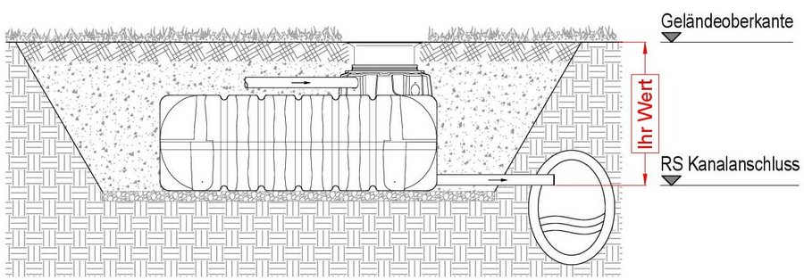 Abstand der Rohrsohle Kanalanschluss zur Geländeoberkante (m)
